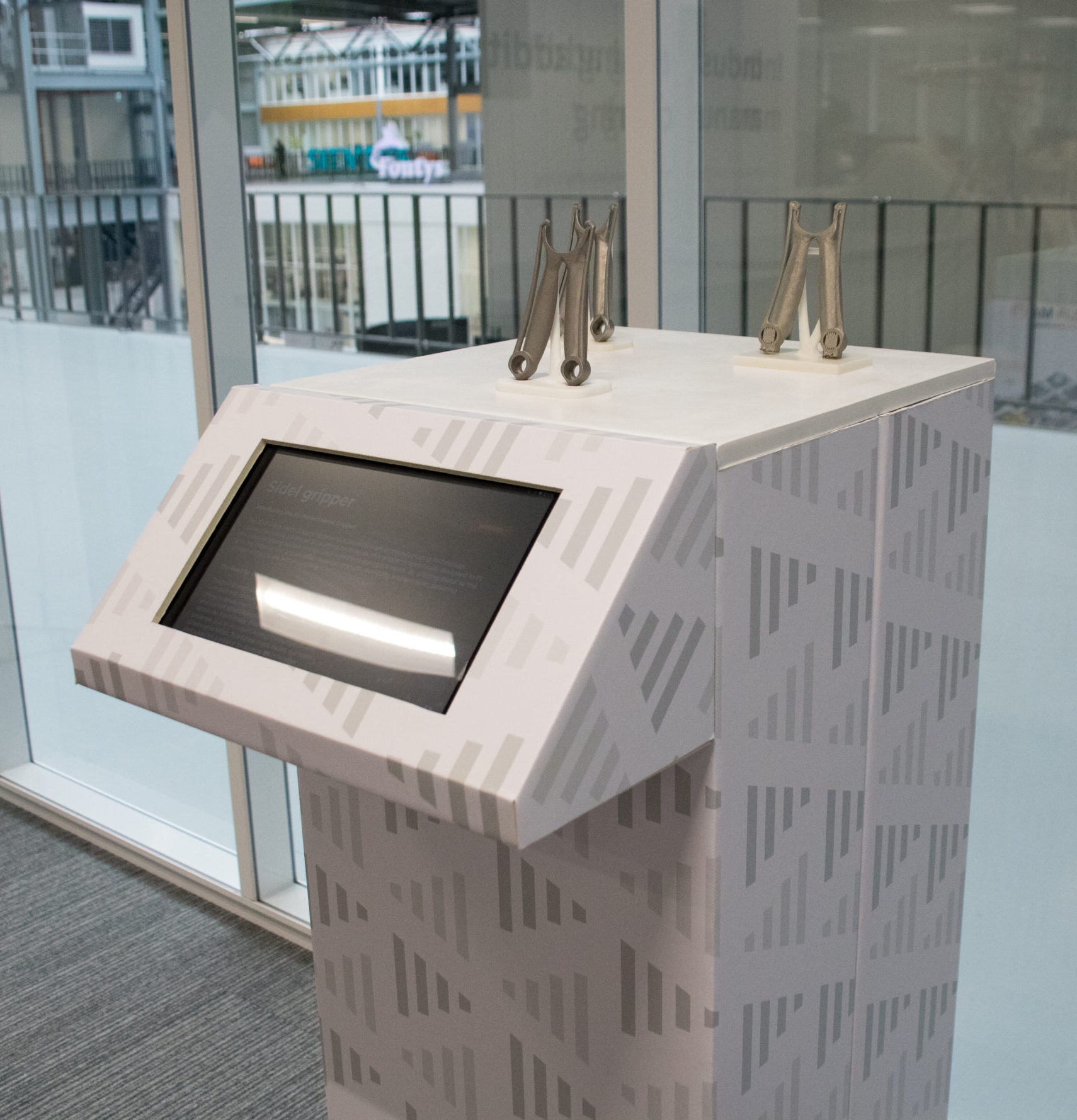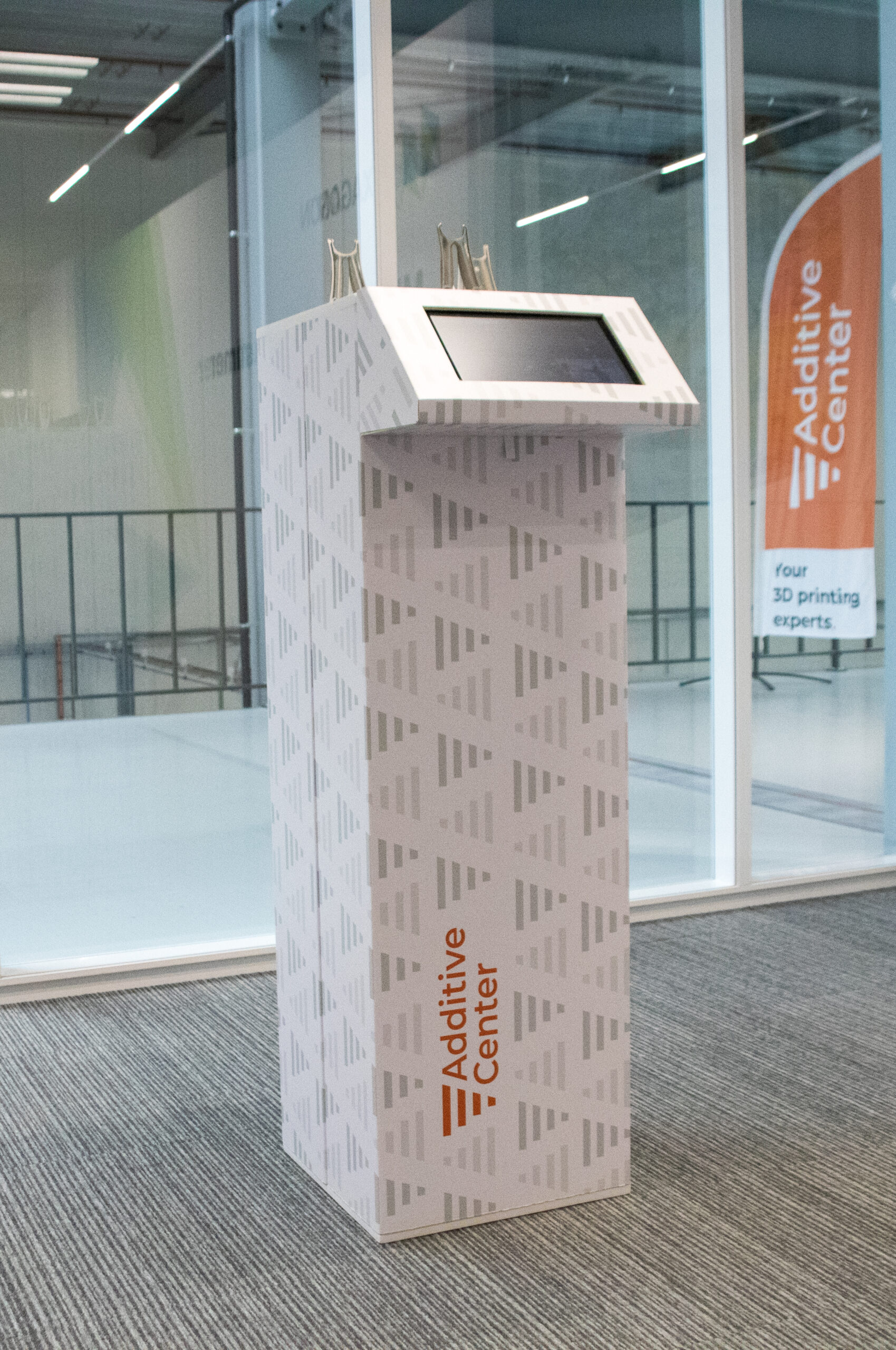 Additive Center needed a display for both office use and events, suitable for showcasing metal and plastic parts. It had to function as a standalone piece while fitting into a future set.